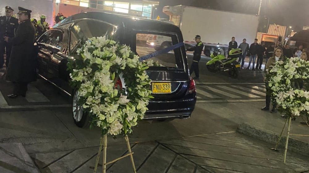El féretro fue recibido en el Aeropuerto El Dorado de Bogotá por su familia, delegados del Gobierno y funcionarios de la funeraria Gaviria.