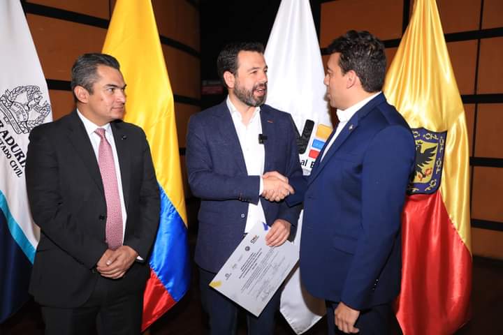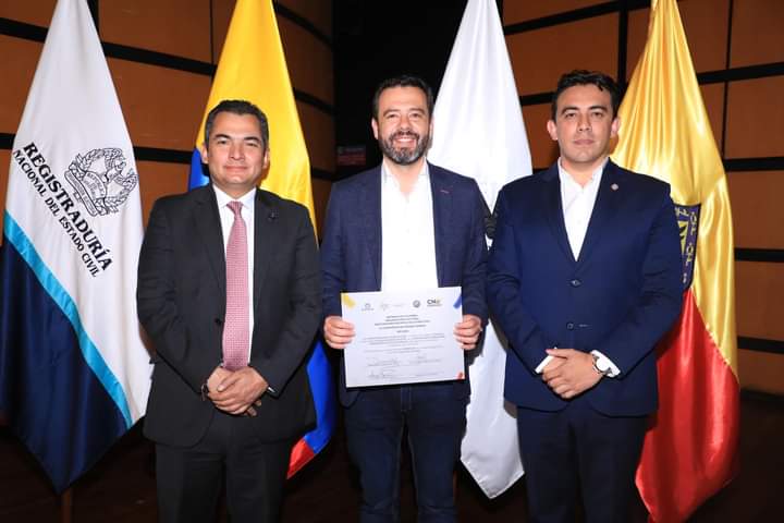 El registrador nacional, Alexander Vega Rocha, en compañía del presidente del Consejo Nacional Electoral (CNE), Alfonso Campo, entregó las credenciales como alcalde electo de Bogotá a Carlos Fernando Galán y a los 45 concejales de la capital del país.