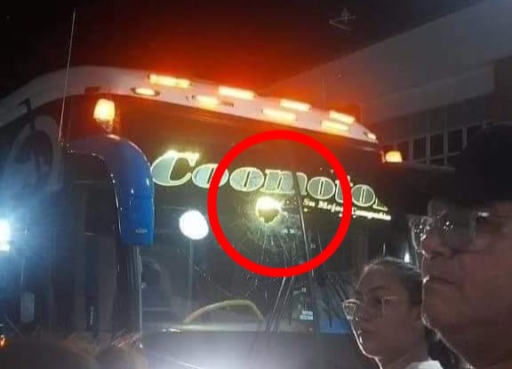 «Recibimos el impacto de una roca bastante grande, impactó el parabrisas del carro, atravesó todo el pasillo del bus golpeando a varias personas. Habían tres personas. Quedaron tres personas bastante heridas. Una le pegó en el hombro y las dos últimas personas que iban en los dos últimos puestos del bus resultaron heridas. Una resultó como una herida en el ojo y la otra resultó como un herida en la cabeza»