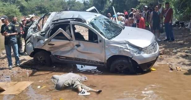El grave accidente sucedió al empezar la tarde de este domingo cuando el vehículo hacia tránsito por la carretera pero por motivos desconocidos el conductor perdió el control cuando tomaba el puente.