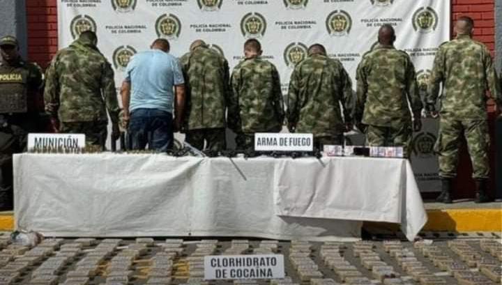 En un operativo de la Policía Nacional en el Valle del Cauca el pasado 18 de septiembre, ocho hombres que se hacían pasar por miembros del Ejército fueron arrestados mientras transportaban más de una tonelada de cocaína y un arsenal de armamento. El hecho se registró en el kilómetro 53 de la vía que conecta los municipios de Andalucía y Cerritos, en la jurisdicción de Obando.