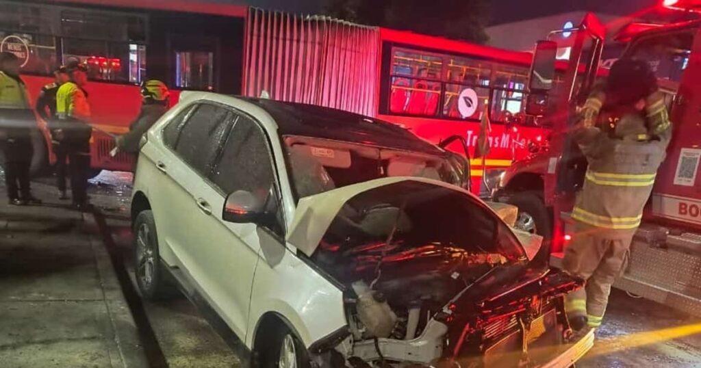 El accidente ocurrió en la calle 80 con carrera 89, cuando el vehículo particular, al parecer, se pasó un semáforo en rojo y chocó con el articulado. En un intento por esquivar el vehículo, el conductor del TransMilenio quiso desviar el bus hacia un costado, pero terminó derribando un poste y un semáforo de la zona. Más de 10 personas resultaron heridas.