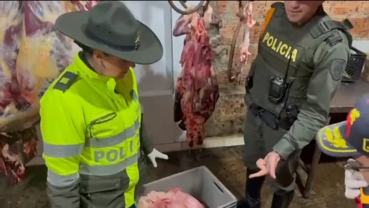 La intervención se realizó tras recibir información oportuna a través de la línea 123, donde se alertó sobre un posible sacrificio ilegal de bovinos en la zona rural. Gracias a esta denuncia, los uniformados desplegaron un operativo en el que hallaron 06 canales de bovinos (reses despostadas) que no cumplían con las condiciones sanitarias exigidas por la ley.