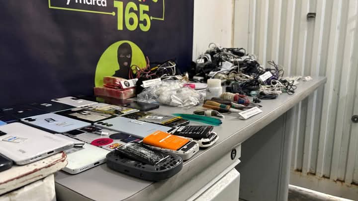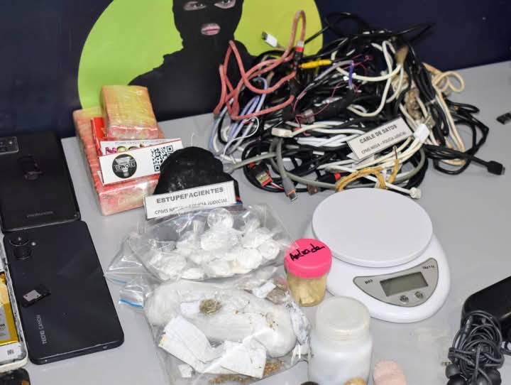 En el procedimiento judicial los uniformados incautaron 77 teléfonos celulares, 89 tarjetas SIM, 69 cargadores para celulares, 4 routers para conexión WIFI, 7 armas cortopunzantes y 40 gramos de estupefacientes.