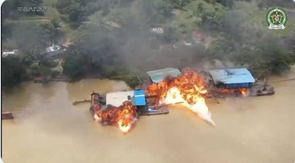 Fuerza pública destruyó 24 dragas y 9 excavadoras, en un operativo contra la minería ilegal, el día de ayer en el río Nechí.