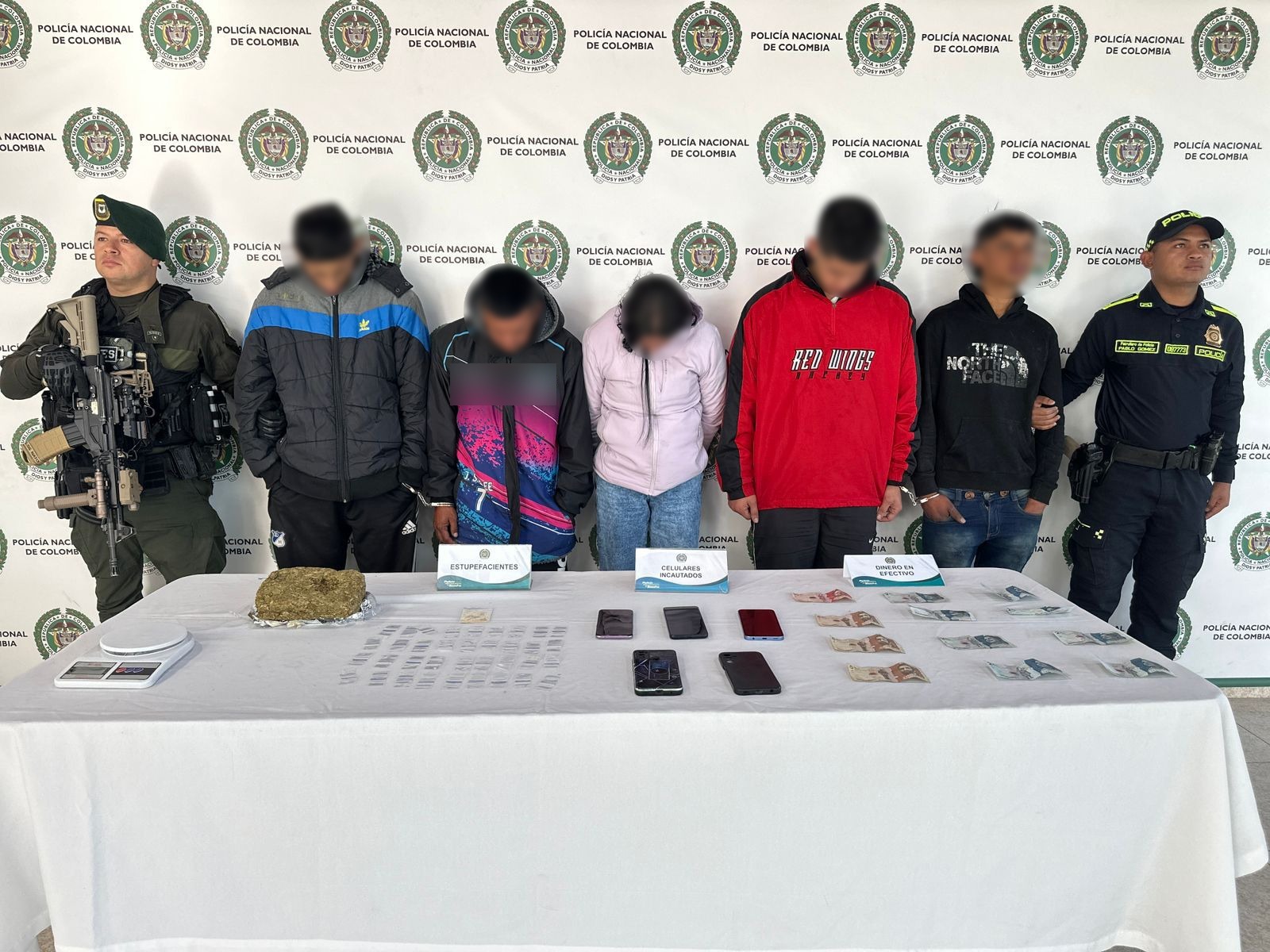 Gracias al trabajo articulado con la Policía Nacional y al apoyo decidido de la Fuerza Pública, se logró un importante avance en la lucha contra el crimen organizado en Sibaté: la captura de seis presuntos integrantes del grupo delincuencial ‘Los Nativos’, dedicado al tráfico local de estupefacientes.