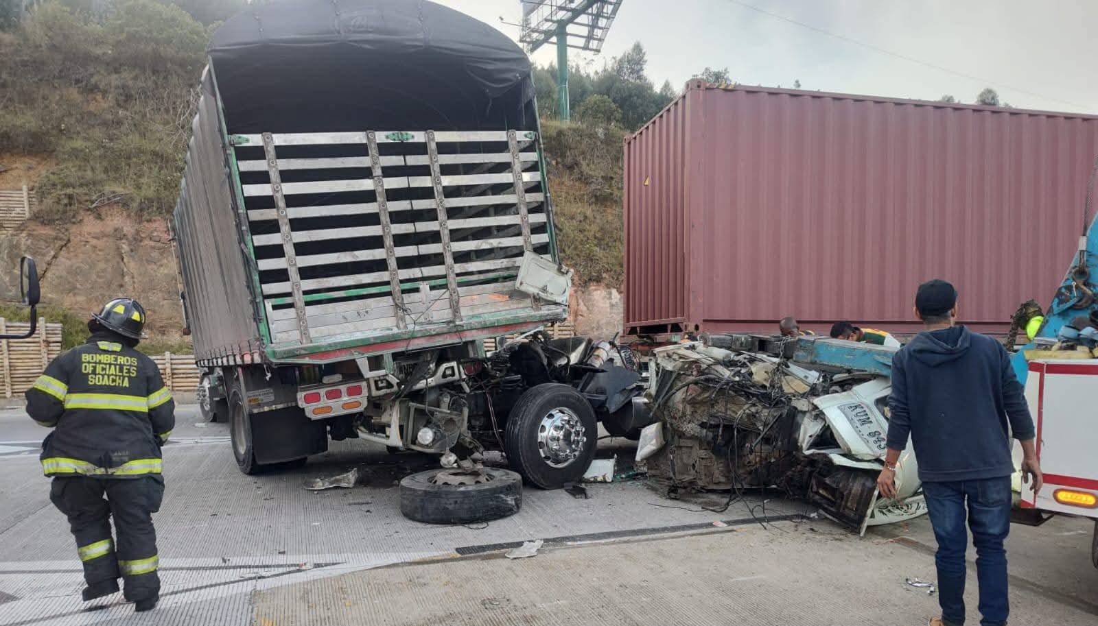 ¡Conductor quedó atrapado y logró ser rescatado tras aparatoso choque entre dos vehículos de carga! Hecho que se presentó sobre las 6:15 de la mañana de hoy 6 de octubre, en la vía Girardot – Bogotá en inmediaciones al peaje de Chuzaca.
