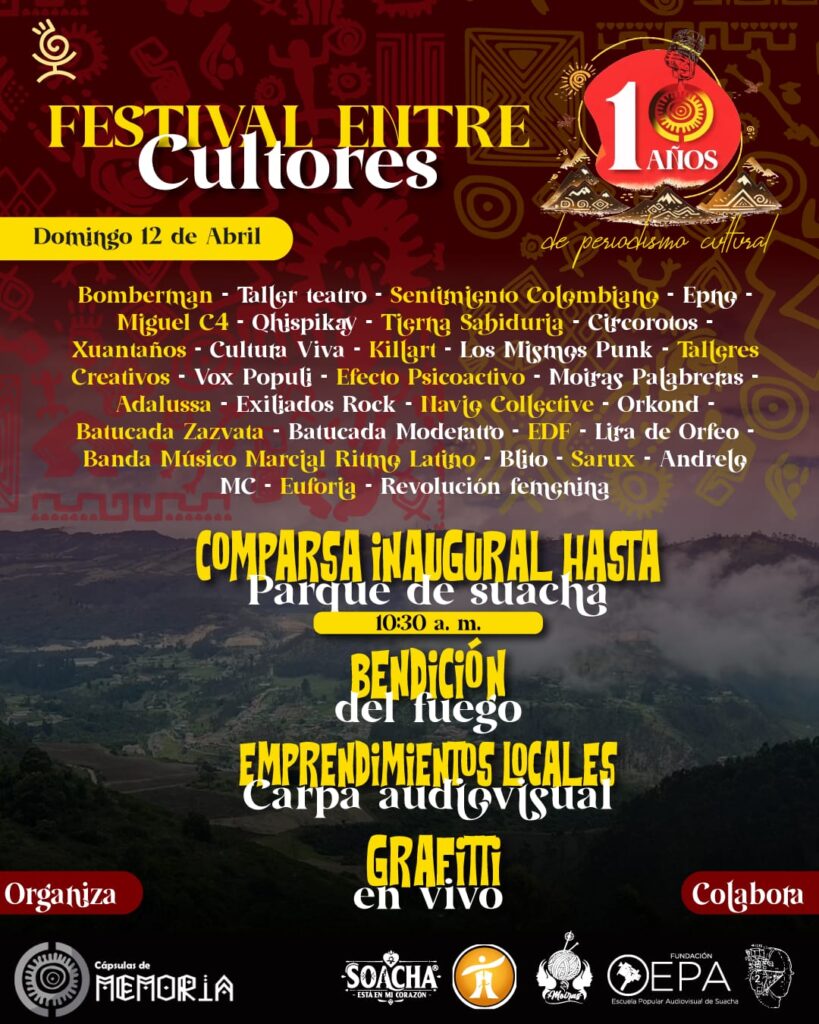 La iniciativa conmemora los 10 años de labor periodística de Cápsulas de Memoria Chibchacum, un proceso de comunicación que durante una década ha trabajado por informar, narrar y visibilizar a los cultores, artistas y procesos comunitarios de Soacha.